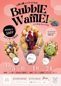 ・内 容 木漏れ日キッチンMii。(バブルワッフル・スムージー)キッチンカー